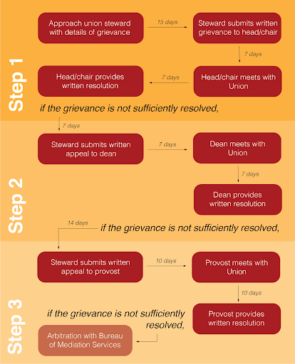 - Establishing a grievance procedure that protects union members by allowing us to hold the university accountable for contract violations and unfair labor practices;